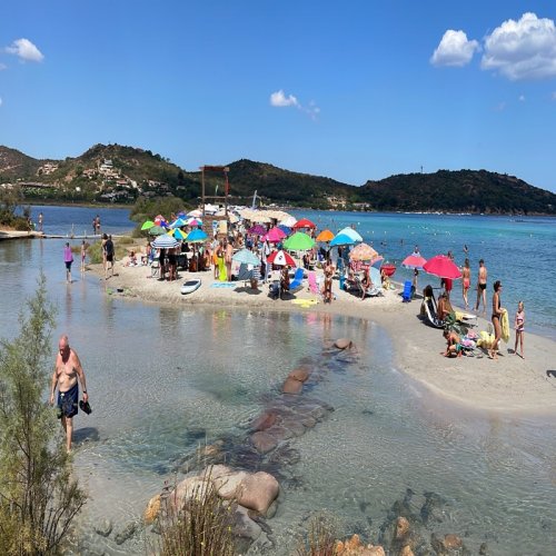 At Punta Pietra Bianca in Sardinia, the white rocky cliffs meet the crystalline waters in a...