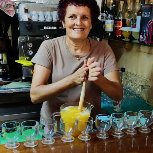 First stop, at the bar Da Ribeira Chupa, where this lovely lady prepared a traditional drink from...