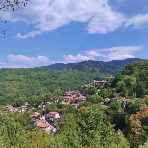 ΕΝ - Agia Triada village viewed from Agios Charalmbos with Mt. Veluchi on the background