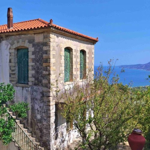 Traditional architecture at Enoria village with amazing views to the Aegean Sea