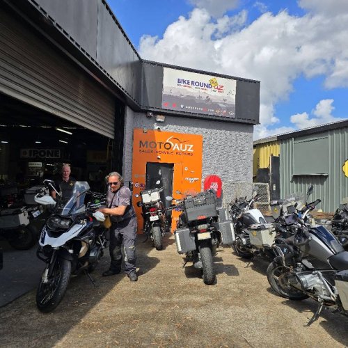 Pick up of the moto, BMW 1250GS Trophy and our tour to Australia begins...